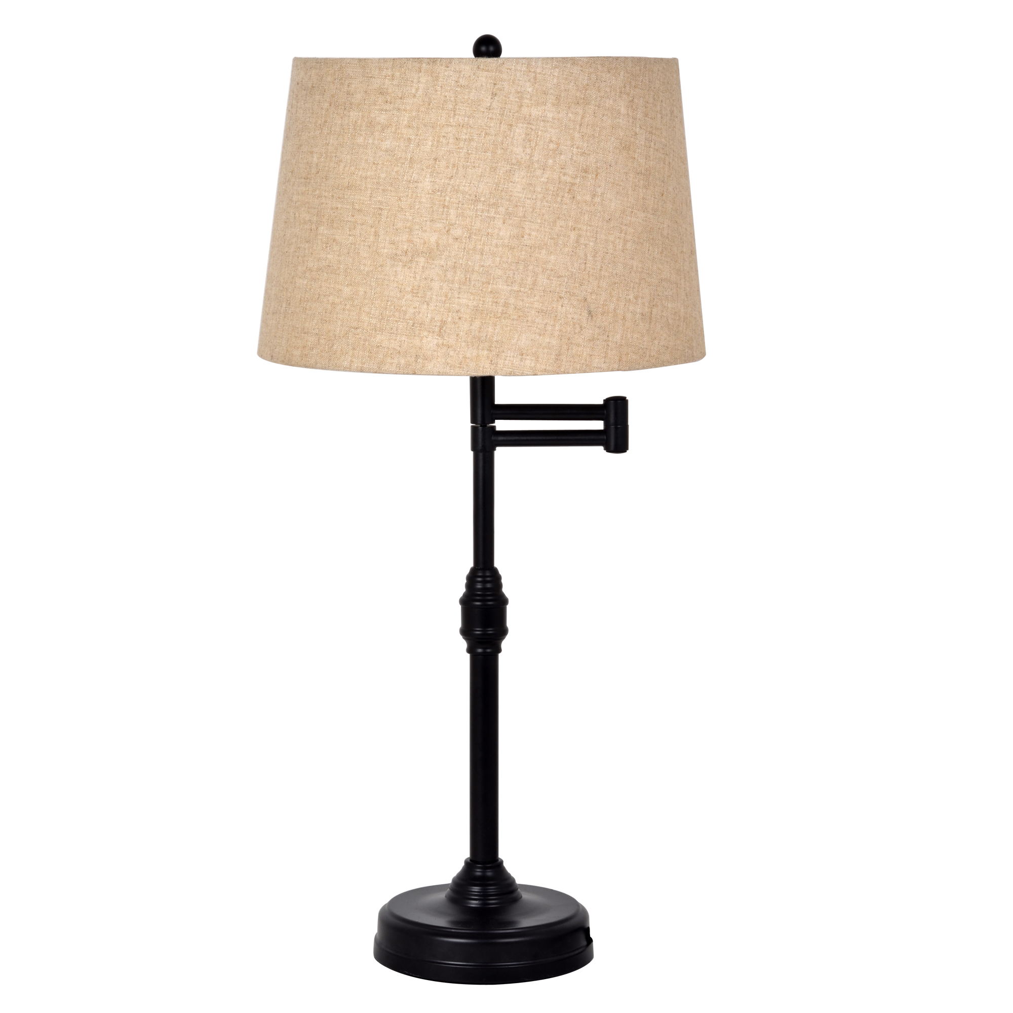 Whether you place it beside the sofa in the living room, on the desk in the executive office, or beside the bed, the Aaron Swing Arm Table Lamp in Antique Bronze with a white linen fabric shade gives elegant form to practical function. The lamp extends and rotates light to just where you need it. At 27″ high, this table lamp is a substantial addition to your home decor. A three-way rotary switch on the socket controls a bulb up to 150 Watts or an equivalent CFL. The 3-way rotary socket switch will only work with a 3-way light bulb, otherwise this lamp will function with simple on/off switch at its highest setting.Read More