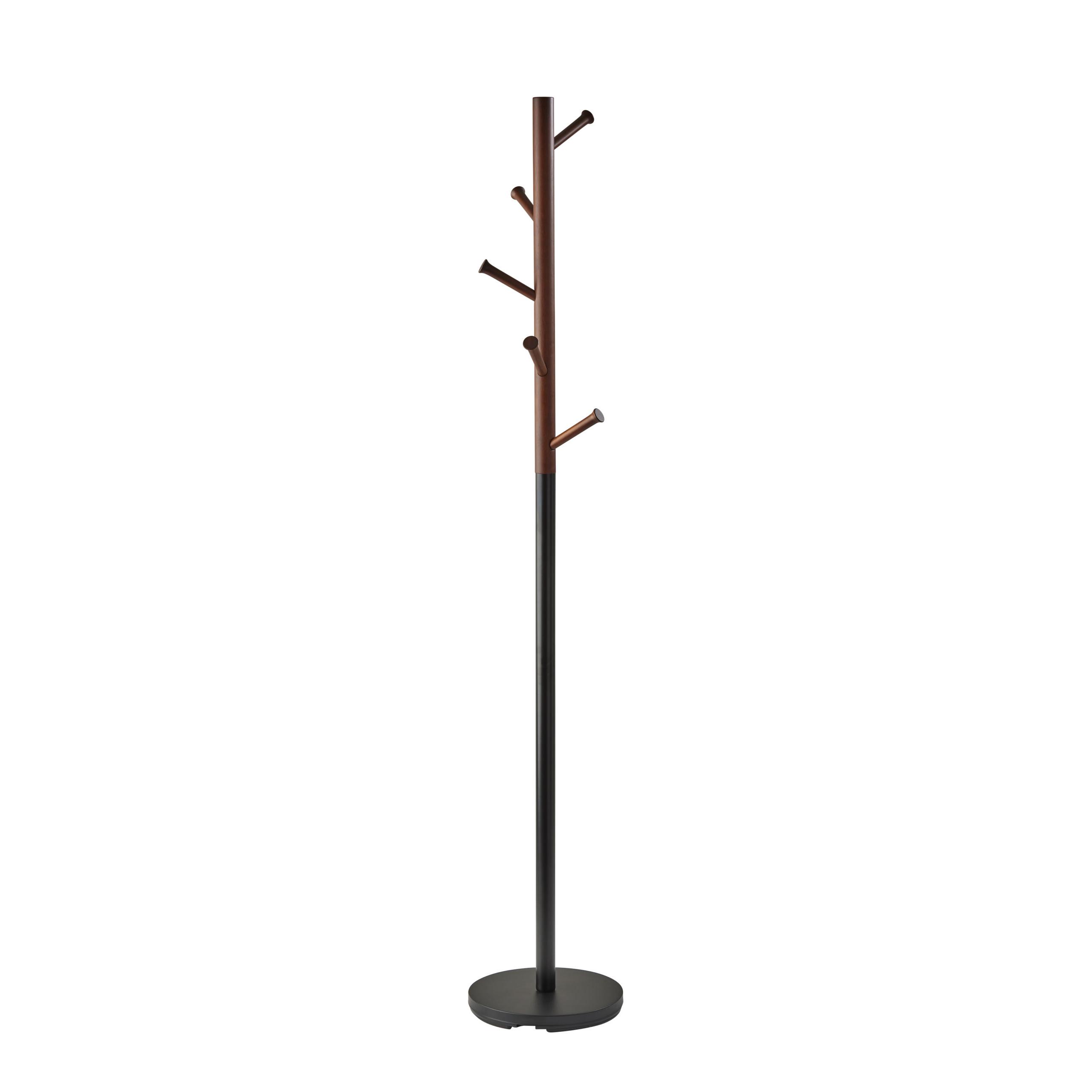 The Adesso Arbor freestanding coat rack effortlessly blends convenience and style. Crafted of walnut rubberwood with a complementary 12″ black metal base, this coat rack is a sturdy and wear-resistant choice. It features five staggered hooks connected to the rubberwood stem, each with a weight capacity of 11 pounds, to keep your clothes, bags, and other items conveniently organized. With its sleek and compact design, this coat rack is a stylish addition to your office, bedroom, living room, or entryway.Read More