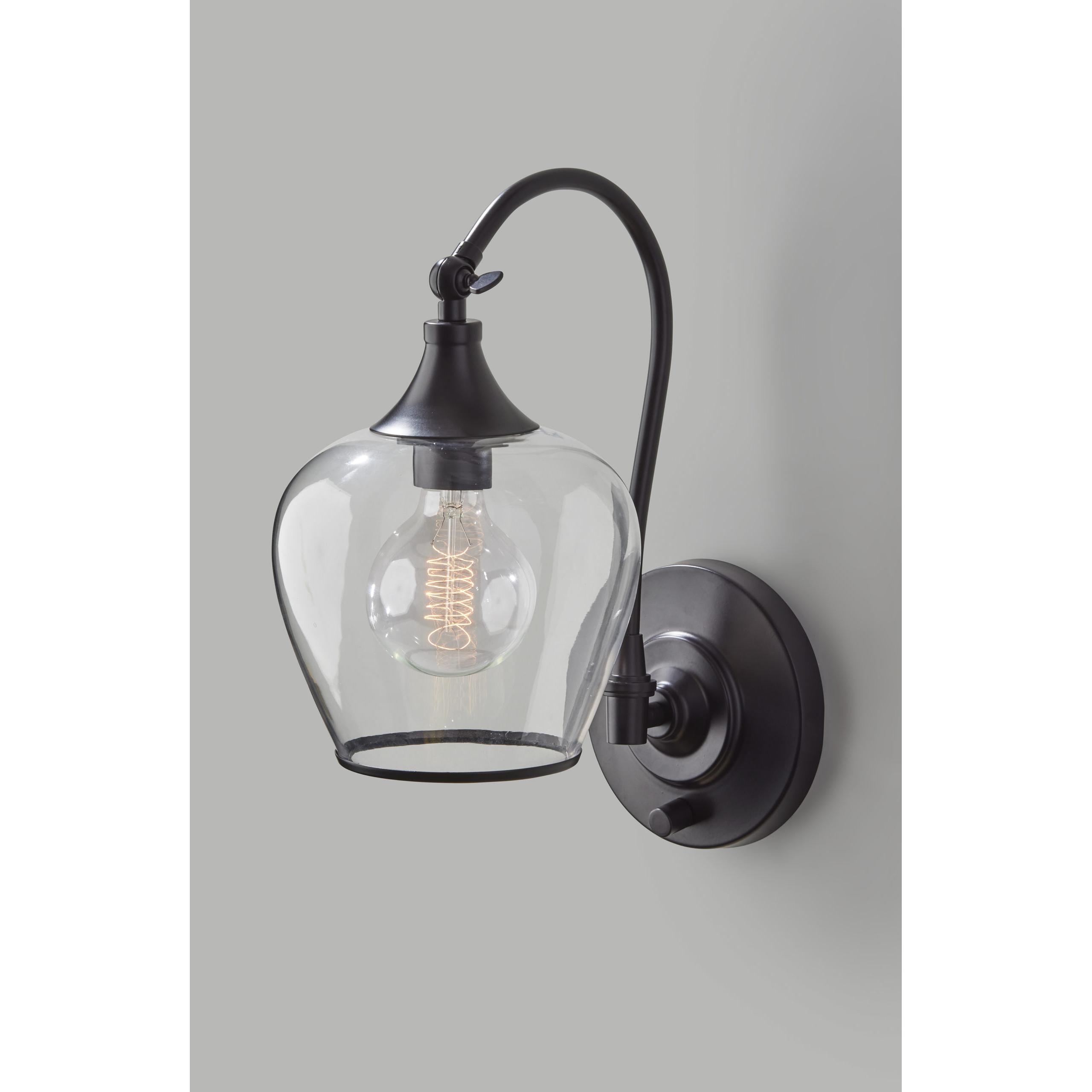 Add an eye-catching design piece to your bedroom or living space with the Bradford wall lamp. With warm light shining through a clear tulip-shaped glass shade, this lamp creates a look that is as aesthetic as it is functional. This 13” tall lamp features a 6” diameter round wall plate and curved stem with a dark bronze finish, and a matching metal rim accenting the glass shade, making it the perfect solution to provide lighting and vintage décor to any space. Completing the vintage look is an included 40W Edison bulb. For versatile lighting options, the base of the shade includes an articulation point, allowing you to pivot the shade up or down to direct the light wherever it’s needed. This lamp is operated by a rotary switch on the wall plate to easily turn it on or off. Complete your space’s look with the coordinating Bradford pendant lighting, floor lamp, and desk lamp.Read More