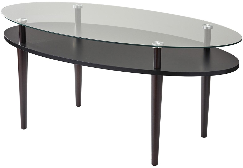 Contrasting materials of glass and wood make the Dwight Coffee Table a modern, yet versatile addition to your living room. A clear tempered glass table top adds an open, airy feel while a black shelf provides an extra storage feature. Rich, walnut rubber wood forms the solid construction of this coffee table.Read More
