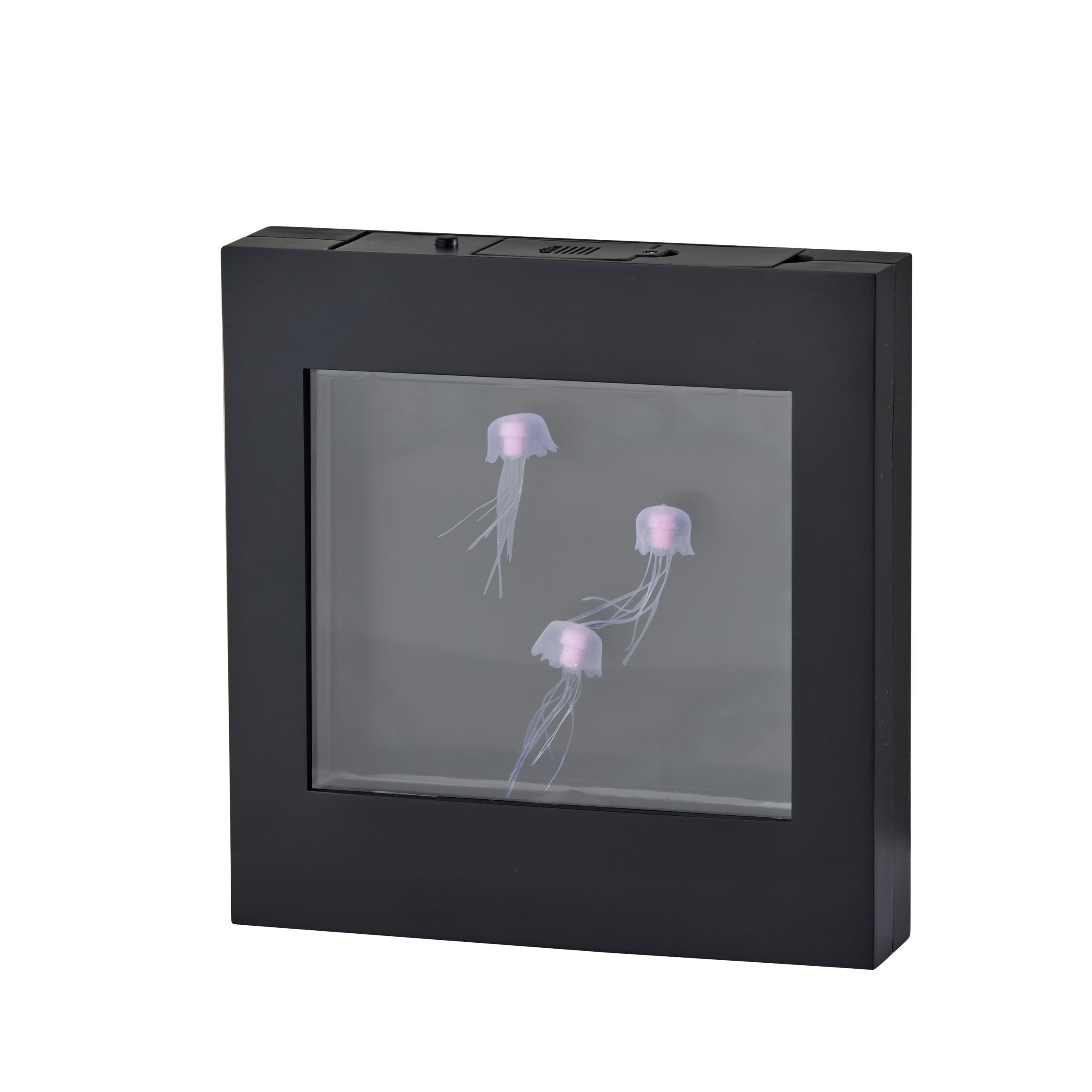Who couldn’t use a calming influence? This Jellyfish Motion Light Box by Simplee Adesso provides the perfect soothing light for any room and can be wall mounted as eye-catching wall art or can stand free on tables, shelves, nightstands, or counters. Measuring 8.75″ tall by 8.5″ wide including a black plastic frame, this light box includes a 6.25″tall by 5.375″ wide rectangular window where white jellyfish glide peacefully through colored light. A 3-way push button switch controls the light. Push once to turn on the blue light, push again for a soothing color changing effect, and push once more to turn the light off. The 0.5W color-changing LED can be powered by either 4 “AA” batteries (not included) for a clean, wire-free aesthetic. Alternatively, the light box can be powered using the included 8′ USB cable for unlimited use without needing to worry about replacing batteries.Read More