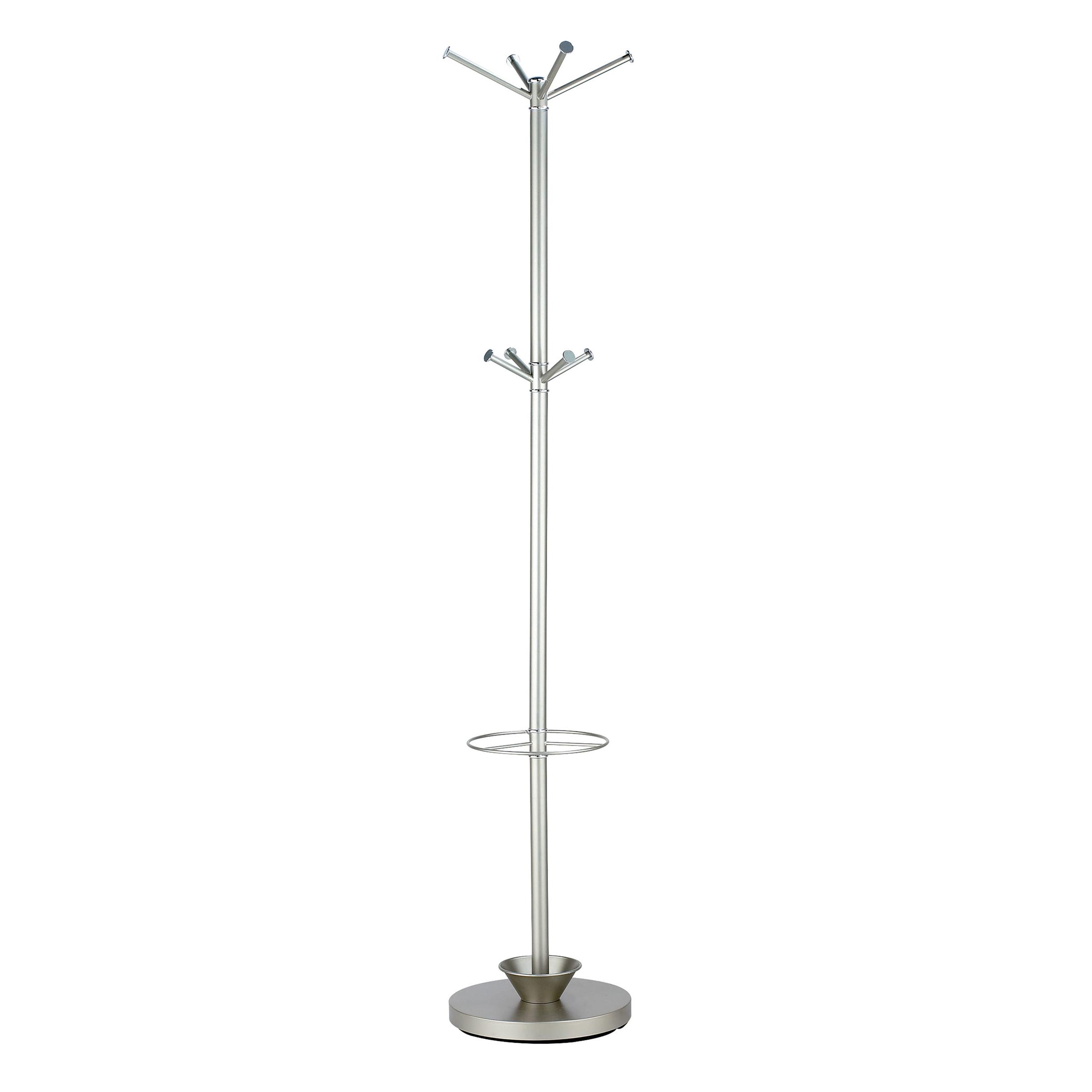 A multi-function accessory that looks good, the Quatro umbrella stand and coat rack takes up minimal space for dorm, office, bedroom, or entry hall. The matte champagne coated steel and chrome accents create a unique contrast. A metal cup at the base catches water from dripping umbrellas.Read More