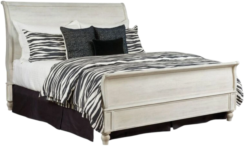 The American Drew® Litchfield Hanover king sleigh bed in the driftwood finish offers a graceful blend of relaxation and quality construction. Clean and flexible with a elegant curved sleigh bed that will work in any bedroom. Also available in king and California king sizes.Read More