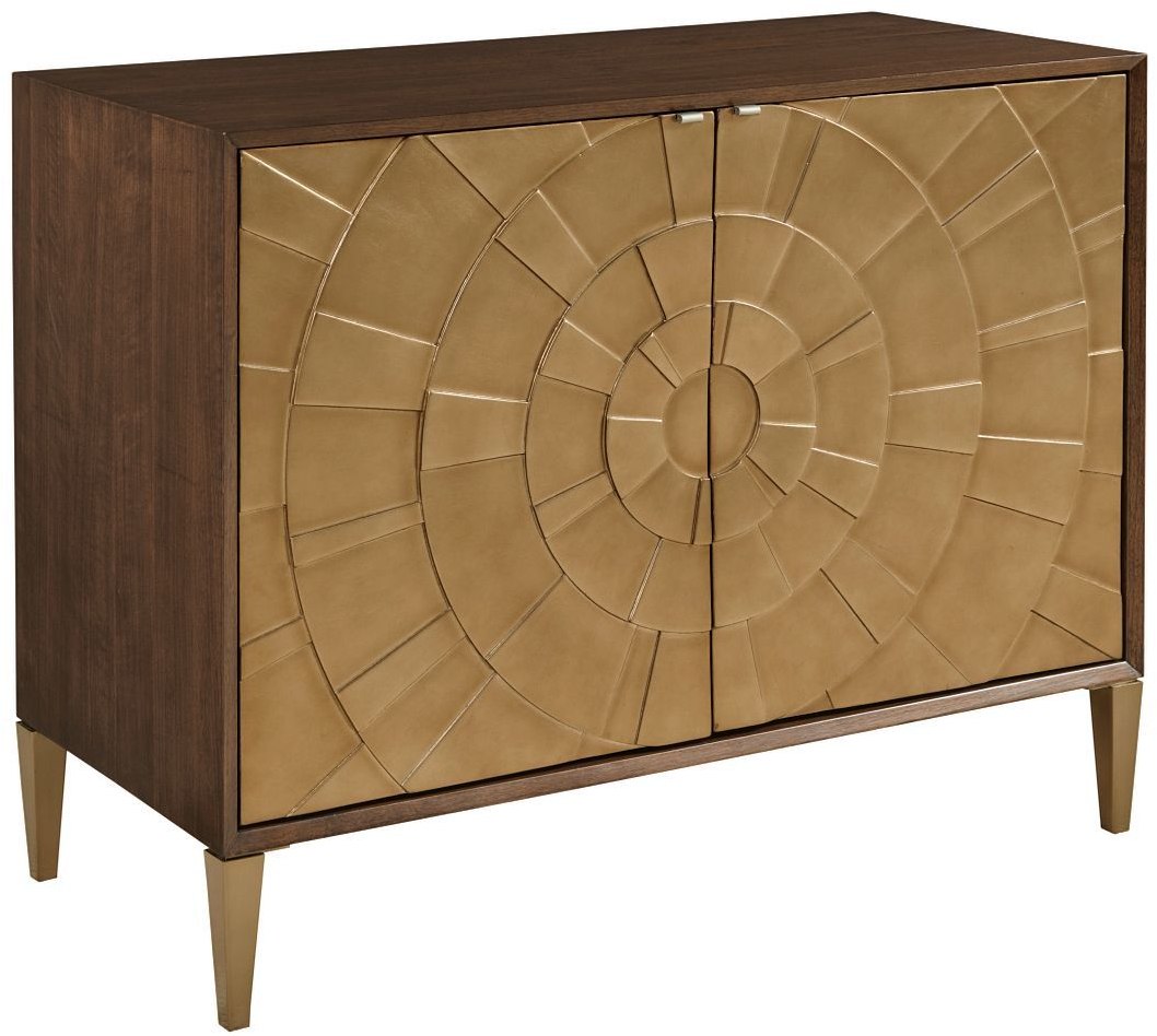 The Norwalk door chest features two doors. Two interior drawers and adjustable shelf behind each door. Includes a brown felt insert in each drawer. Metal legs. Adjustable levelers and hand holds in the back of the case.Read More