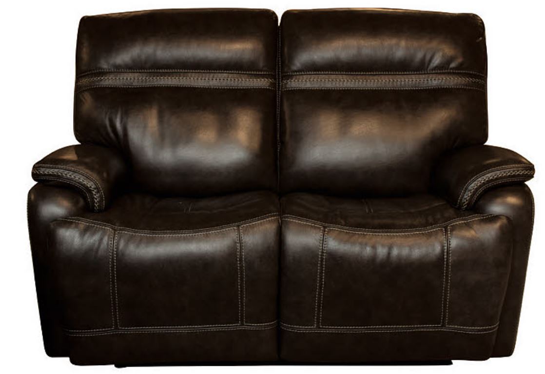 Club Level Grant Motion Loveseat with Power feature pillow arms, footrest seating, and leather.Read More