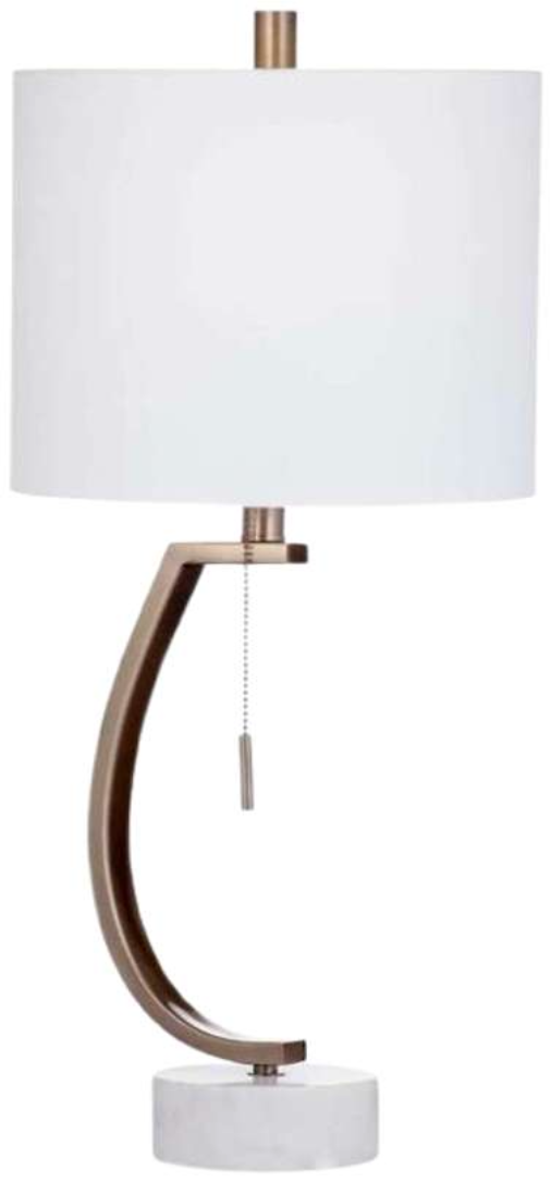 The Alpard Table Lamp is crafted of metal and marble and a white linen drum shade. Shade Size: 12 x 12 x 10.5. Finish: gold, white marble. Material: metal, marble. Weight: 6.4 LBS. Wattage: 100W Max. Bulb Type: A. Socket Type: E26. Switch Type: 3 way turn knob.Read More