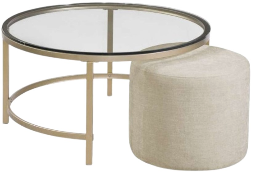 The Anderson cocktail table is a stylish and functional piece, perfect for modern living spaces. It features an elegant antique gold metal base that supports a clear glass top, creating a light and airy feel. Nestled underneath is versatile upholstered ottoman in a soft cream chenille fabric, complete with casters for easy mobility.Read More