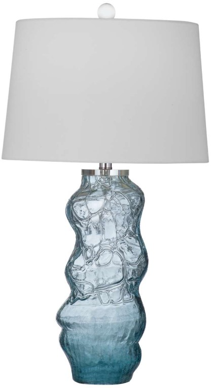 The Atchison table lamp is crafted of art glass with a white linen tapered shade. Finish: blue. The hand-crafted details produced by a skilled artist lends itself to a unique technique and will vary slightly.Read More