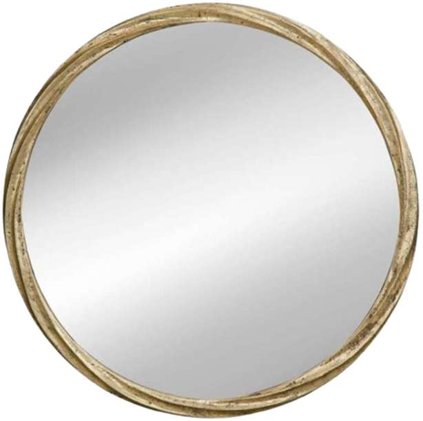 The Beekmann Hill wall mirror is round with a gold twisted frame