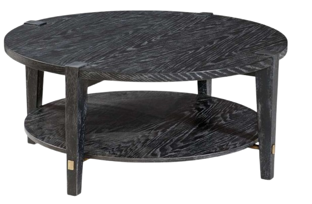 The Whitfield Cocktail Table has a modern styling, legs and top have interlocking design, constructed with rubberwood solids and flat-cut, cerused oak in a black stain with generous white wax hang-up in the open grain, accented with brushed gold cross bars at the base that pierce through the legs.Read More