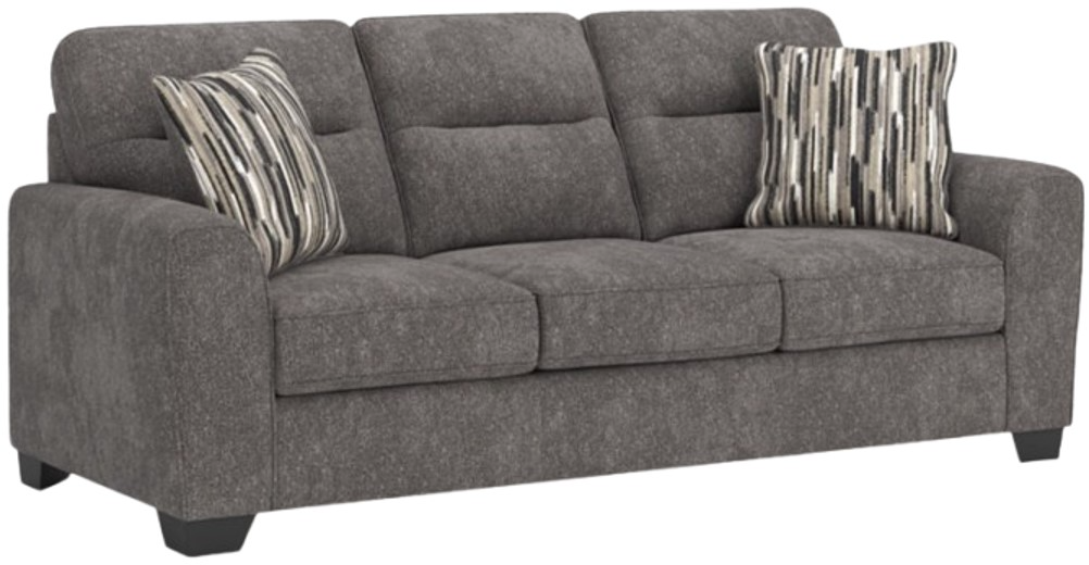 Strike a balance between the indulgent comfort you crave and the contemporary aesthetic you long for. The fabulously soft, graphite-colored upholstery of this sofa takes neutrals to new heights. Plus there's plenty of room to spread out and relax solo or with your bestie. Geometric-patterned accent pillows perfect the richly on-trend aesthetic.Read More