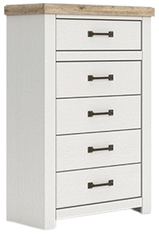Offers clean, practical storage with a subtle two-tone brown and white finish that complements many bedroom schemes. With several smooth-sliding drawers, it keeps clothing and linens neatly organized and out of sight. Its balanced design makes it a dependable, unobtrusive addition to any room.Read More