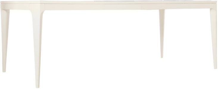 This dining table from the Calista collection features a fancy face top and one 24" leaf in silken pearl finish with inlaid plated stainless steel border in polished nickel finish. Make a bold statement by incorporating this stunning dining table into your home.Read More