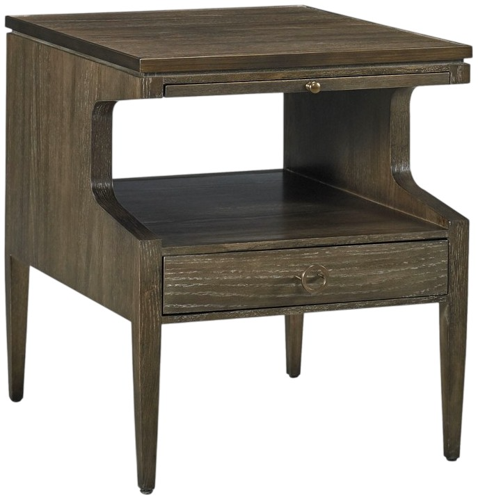The Hayes features a sophisticated mid-modern style with overall clean lines and shaped sides tucked in at the waist. Accented with aged bronze hardware and metal trim, the lamp table is a smaller scale side table option for the collection.Read More