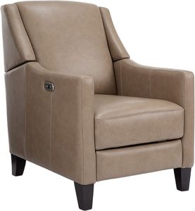 Recliner chair with high back, slim arms and exposed wood legs. This streamline design puts comfort center stage. At a touch of a button, you can recline with foot rest extended and just relax. Available in Push back or Power.Read More