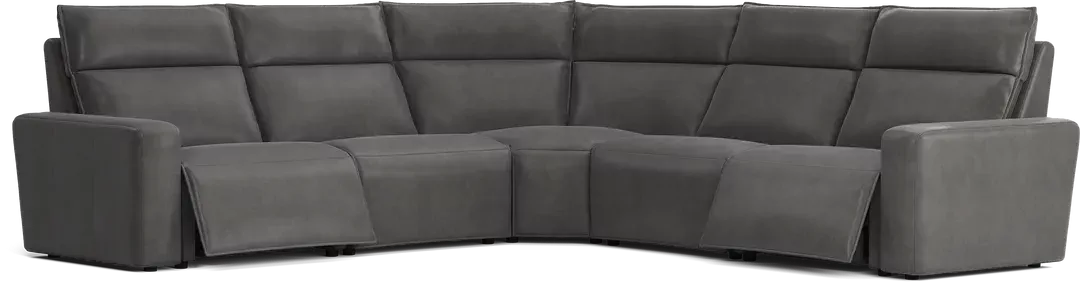 Discover the unlimited possibilities of Emily Modular dual power reclining sectional, thoughtfully designed with both comfort and flexibility in mind. Contemporary in style and upholstered in a plush suede-soft charcoal colored microfiber, the sectional's tailored silhouette is enhanced by welted track arms and tufted back cushions for a look of refined elegance and serenity. Each piece is upholstered on all sides, offering endless opportunities for both reconfiguration as well as individual use. Dual power reclining functionality allows for easy adjustment in the headrest and footrest, providing the ultimate in personalized comfort. Select a preconfigured design or visit a showroom to learn about individual components and create the modular sectional perfect for your space and style. Upholstery: 100% PolyesterRead More