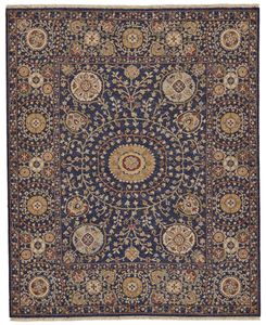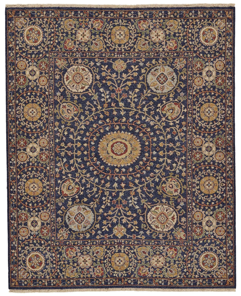 The Feizy Amherst Collection showcases our modern interpretation of reversible Soumak rugs. One side of these handwoven beauties features more distinctive design details and dynamic texture while the other is more abstract. Crafted with a durable wool face the rich colors highlight circular Suzani-inspired patterns. Amhersts elaborate artistry will astound and invigorate any space.Hand-knotted with wool and cotton in India.