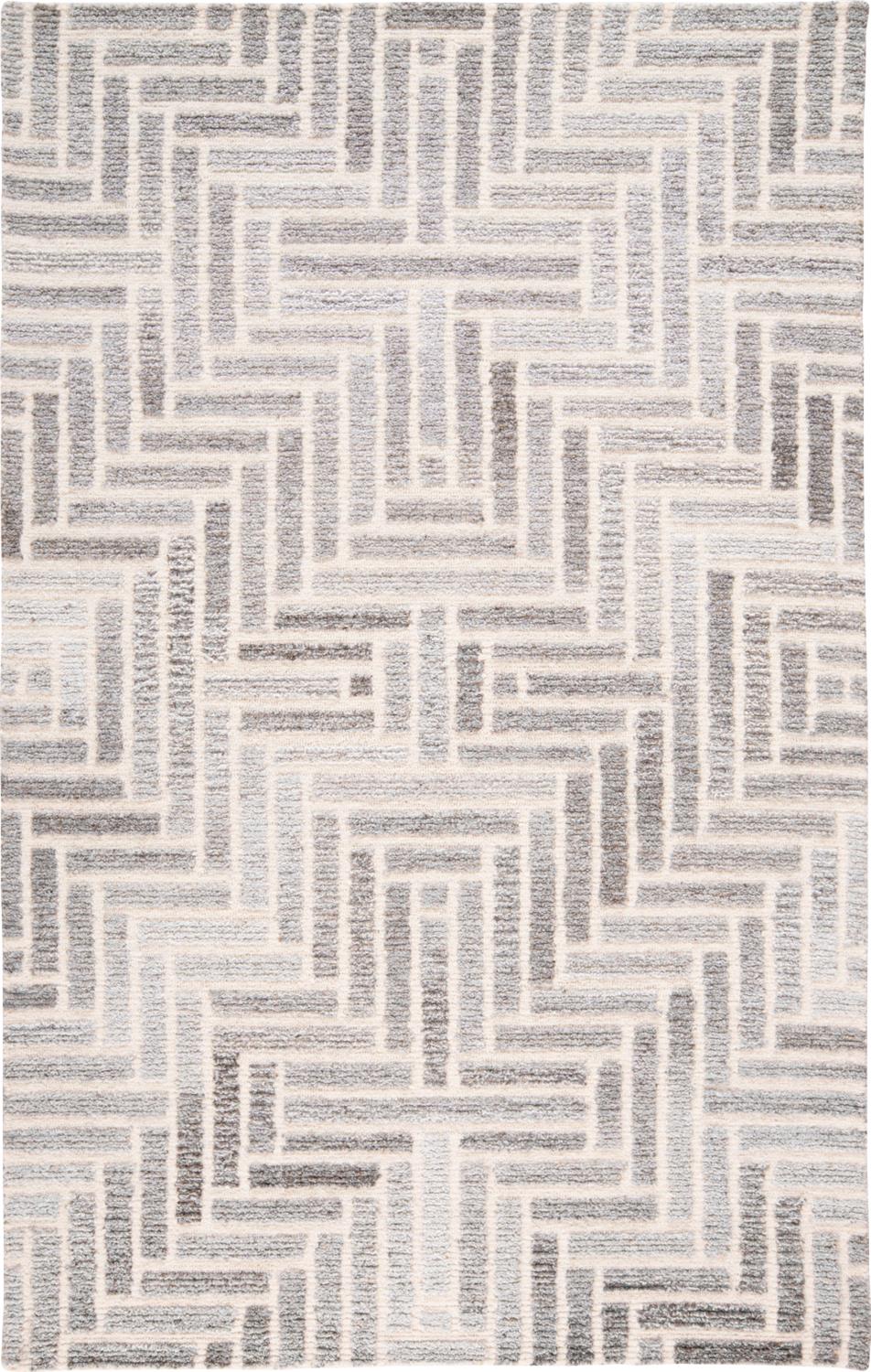 A wool and viscose pile is meticulously hand-tufted in sophisticated grays and warm taupes accented by inky blacks and a subtle sheen in the Asher Collection. The transitional geometric motifs are grounded by the neutral color palette making this collection approachable and easy to decorate with.