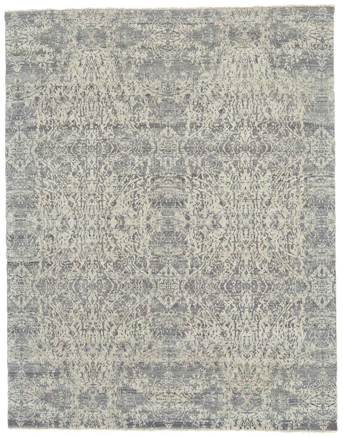 Monochromatic tones of gray accented by subtle pops of blue lend the Dalia Collection a timeless elegance. Hand-knotted in India with hand carded hand spun wool these designs feature intricate all-over patterns with weathered effects to lend a new spin to traditional motifs. These one-of-a-kind pieces will create settings of sophistication in any room.