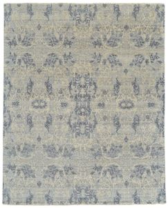 Monochromatic tones of gray accented by subtle pops of blue lend the Dalia Collection a timeless elegance. Hand-knotted in India with hand carded hand spun wool these designs feature intricate all-over patterns with weathered effects to lend a new spin to traditional motifs. These one-of-a-kind pieces will create settings of sophistication in any room.