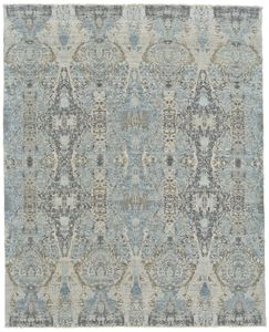 Monochromatic tones of gray accented by subtle pops of blue lend the Dalia Collection a timeless elegance. Hand-knotted in India with hand carded hand spun wool these designs feature intricate all-over patterns with weathered effects to lend a new spin to traditional motifs. These one-of-a-kind pieces will create settings of sophistication in any room.