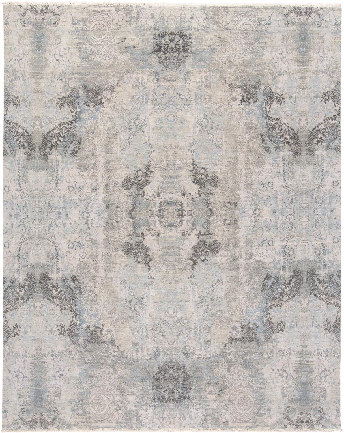 Monochromatic tones of gray accented by subtle pops of blue lend the Dalia Collection a timeless elegance. Hand-knotted in India with hand carded hand spun wool these designs feature intricate all-over patterns with weathered effects to lend a new spin to traditional motifs. These one-of-a-kind pieces will create settings of sophistication in any room.