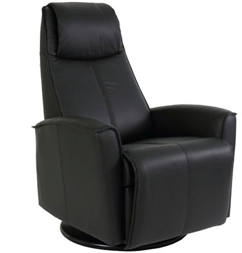 The Fjords Urban swing relaxer, featuring an adjustable head pillow and manual release headrest angle, makes the seating experience ergonomic and gives your lower back correct support. Available in all our leathers and select fabrics, the Urban is a swivel/glider/rocker recliner available in motorized and manual versions. The design is available in two sizes, small and large. Black base is standard on Urban.