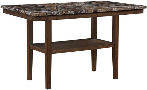 Finished in a warm brown tone faux marble tabletop, the dark brown legs and shelf add depth and contrast for a timeless look.