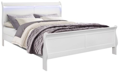 Reach your design goals in your bedroom design with this Charlie White King Sleigh Bed. This bed features a white finish with LED light in headboard. Incorporate this into your bedroom to give your space a refined touch.Read More
