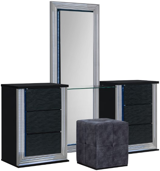 The real showstopper is the LED accents that add a touch of luxury and sophistication to the overall look. An available large matching vanity with stool makes this one of the most accommodating, complete solutions for your bedroom.