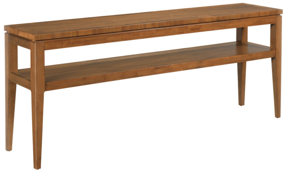 Enjoy a warm up to date look with the Premise collection. This brown rectangular sofa console table combines elegant simplicity with functionality. Constructed of Walnut veneers with elegant tapered legs that support floating tops. Its rich brown finish, making it a versatile addition to any living space.Read More