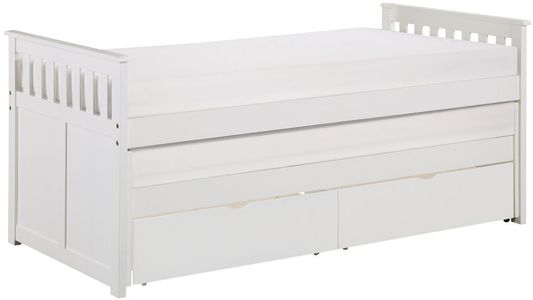 Maximizing sleep space is achieved with the stylish Galen Collection. This transitional twin over twin bed is featured in a white finish making it an appropriate choice for a number of youth bedroom settings. The bed’s configuration allows for the addition of dual under-bed toyboxes, allowing for convenient storage underneath the bed.Read More