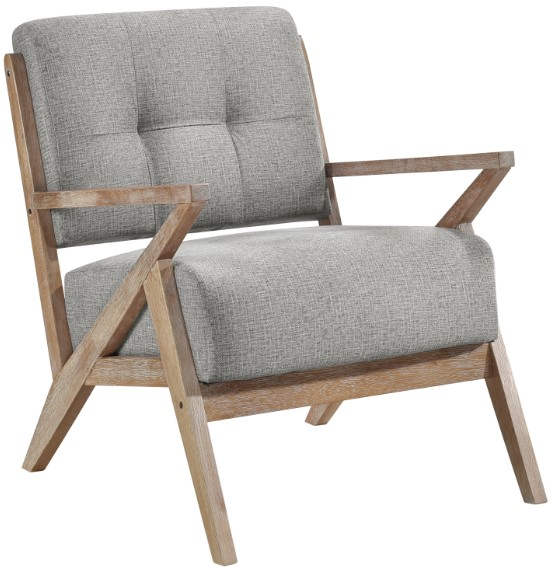 Angled lines intersect to create the modern profile of the Ollen Collection. The rusticated solid wood frame is highlighted with an antique walnut finish. The gray fabric upholstery that covers the seat and back of the chair will serve as a complement to your home’s décor.Read More