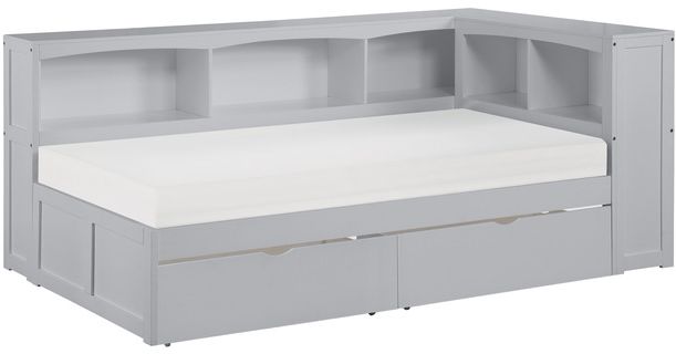 Maximizing sleep space is achieved with the stylish Orion Collection. This transitional twin corner bookcase bed is featured in a gray finish making it an appropriate choice for a number of youth bedroom settings. The bookcase headboard allows for convenient storage within arm’s reach.Read More