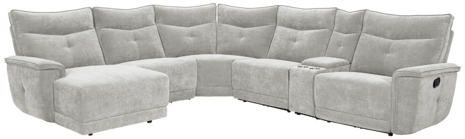 Includes 6 pieces: LSF Chaise (5L), Armless Chair (AC); Corner Seat (CR), Armless Chair (AC), Console With Stainless Steel Cupholders (CN) and RSF Reclining Chair (RR)