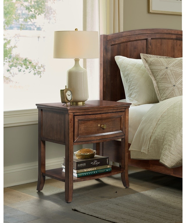 The Charleston nightstand comes in a beautiful cognac finish. It features one storage drawer, a storage shelf, and USB charging ports.Read More