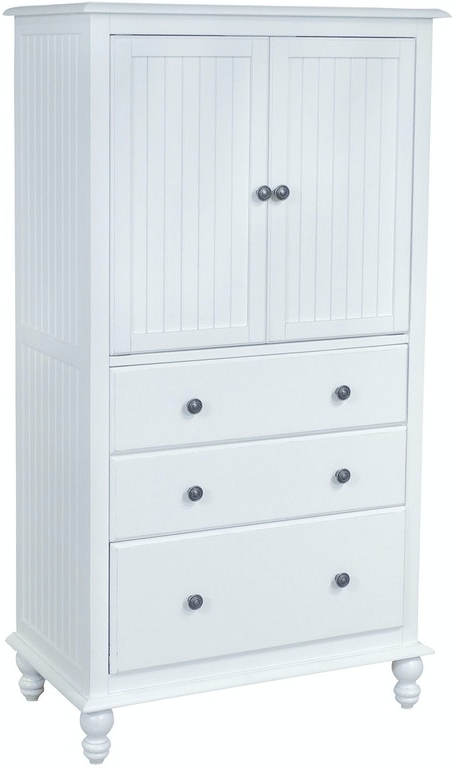 The Cottage armoire features a beach white finish, 3 drawers, and a large storage compartment with two doors. All wood construction and it's unique design give the Cottage collection a timeless style.Read More