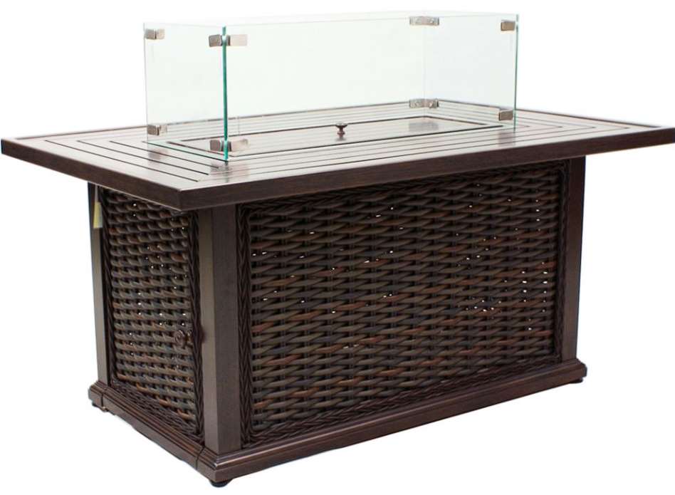 Features: Transitional design with a modern classic large scale weave. Aluminum top. Slide out drawer for propane gas storage. Propane gas fueled. Will produce 60,000 BTU.