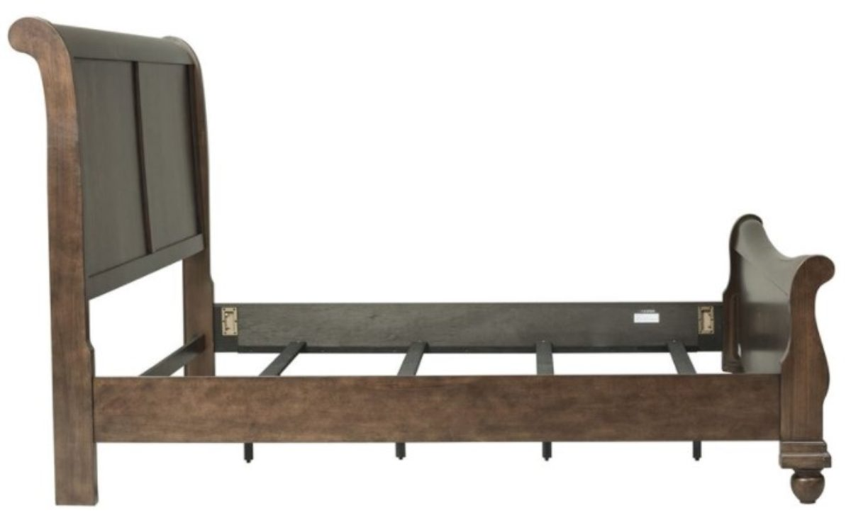 Invite this casual yet traditional Rustic Traditions sleigh bed into your home. The rustic cherry finish enhances the classic Louis Philippe styling of the bed. Make a statement with the rolled-back headboard and a footboard that features a rolled cap rail, creating a nice motion.Read More