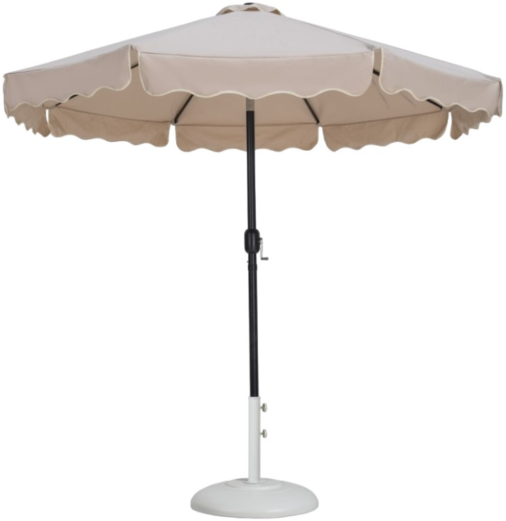Escape from the sun's rays when you're basking beneath this Amalfi beige fabric with cream piping and matte black aluminum patio umbrella with matte white base set. This umbrella and stand is an ideal option for adding shade to any area of your deck or patio.Read More