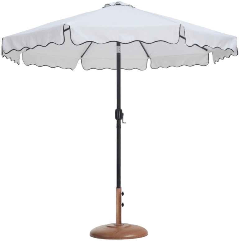 The aluminum pole weathers the elements with ease and is finished in matte white for a resort-inspired look. The umbrella's fabric is water and color-fade-resistant, ensuring lasting beauty in your outdoor space.