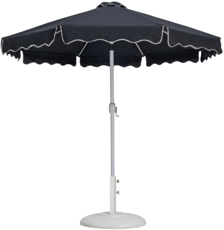 Escape from the sun's rays when you're basking beneath this Amalfi black fabric with cream piping and matte white aluminum patio umbrella with base set. This umbrella and stand is an ideal option for adding shade to any area of your deck or patio.Read More
