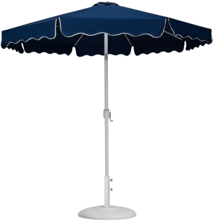 Escape from the sun's rays when you're basking beneath this Amalfi navy fabric with cream piping and matte white aluminum patio umbrella with base set. This umbrella and stand is an ideal option for adding shade to any area of your deck or patio.Read More
