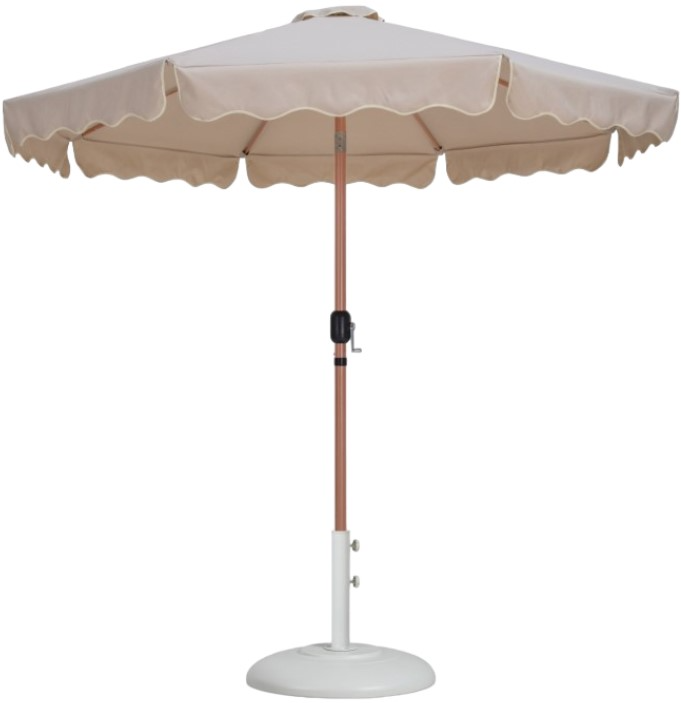 Escape from the sun's rays when you're basking beneath this Amalfi beige fabric with cream piping and teak aluminum patio umbrella with matte white base set. This umbrella and stand is an ideal option for adding shade to any area of your deck or patio.Read More
