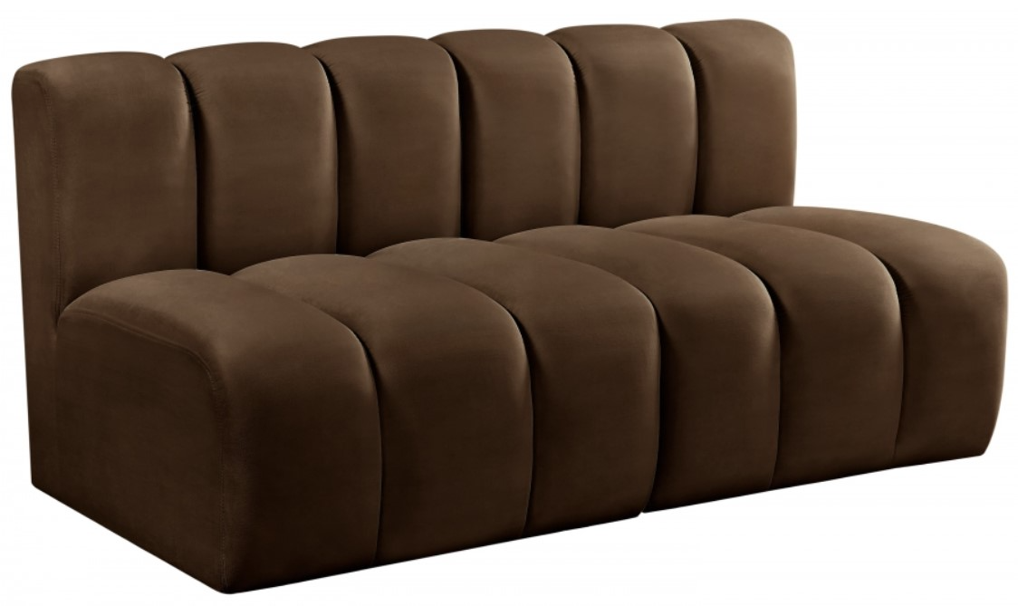 Give your living room or den the perfect blend of style and versatility with this Arc velvet fabric curved modular sofa. Part of the Arc modular furniture collection, this sofa comes upholstered in rich brown velvet fabric and features deep channel tufting that adds a touch of luxury while enhancing comfort and support.Read More