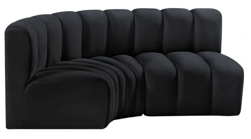 Give your living room or den the perfect blend of style and versatility with this Arc velvet fabric curved modular sofa. Part of the Arc modular furniture collection, this sofa comes upholstered in rich black velvet fabric and features deep channel tufting that adds a touch of luxury.Read More
