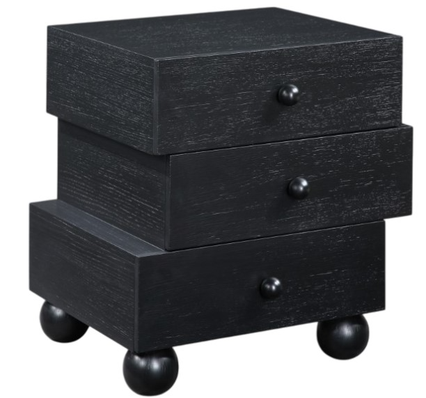Add a touch of conspicuous artistry to your space with the askew black oak veneer nightstand, featuring a rich finish and a striking art deco design. Crafted from oak veneer, this statement piece stands out with its unique ball legs and asymmetrical layered drawers, creating a visually dynamic look.Read More