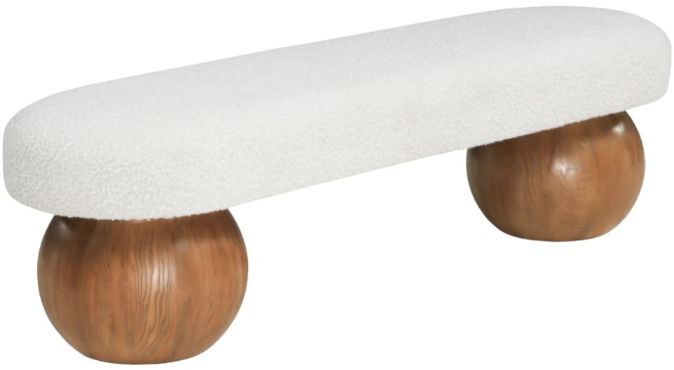 Elevate your home decor with this stunning Bowie Boucle Fabric Bench. The rich cream boucle fabric gives it a luxurious and sophisticated look that is sure to catch the eye of guests. The walnut finish on the solid ash wood ball-shaped legs adds a touch of charm and elegance to the piece.Read More