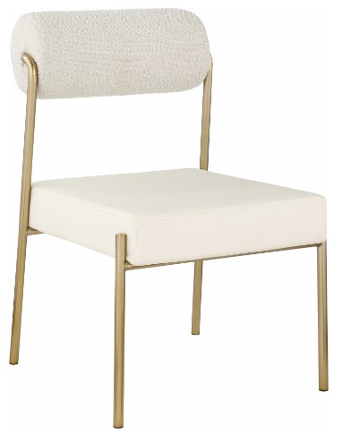 Transform your dining area with this Carly cream vegan leather seat/boucle fabric back dining chair. Its cream vegan leather seat provides you with a soft place to sit, while its rich cream boucle back amps up the comfort level an extra notch.Read More