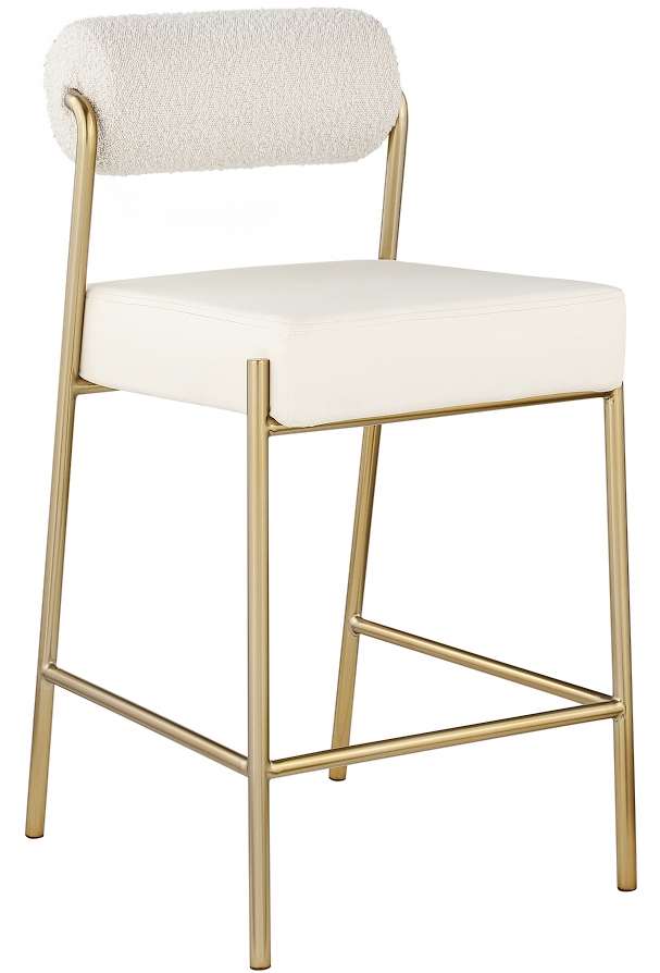 Transform your dining area with this Carly cream vegan leather seat/boucle fabric back counter stool. Its cream vegan leather seat provides you with a soft place to sit, while its rich cream boucle back amps up the comfort level an extra notch.Read More
